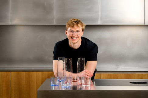 Produkty sa vyrábajú z farebného skla, takže sa farba nevymyje a používaním nijako nebledne. V kombinácii so svetlom a tekutinou získava riad ďalší rozmer a materiál jemne mení odtieň aj intenzitu farieb. „Farebnosť kolekcie je pre mňa rovnako dôležitá ako tvar. Vybrali sme paletu troch odtieňov, ktoré sa medzi sebou dajú kombinovať a pri stolovaní pôsobia prirodzene a naživo,“ dopĺňa dizajnér. Súčasťou sklárskej zmesi je aj titán, ktorý zvyšuje tvrdosť a odolnosť skla bez toho, aby znižoval jeho ľahkosť.
