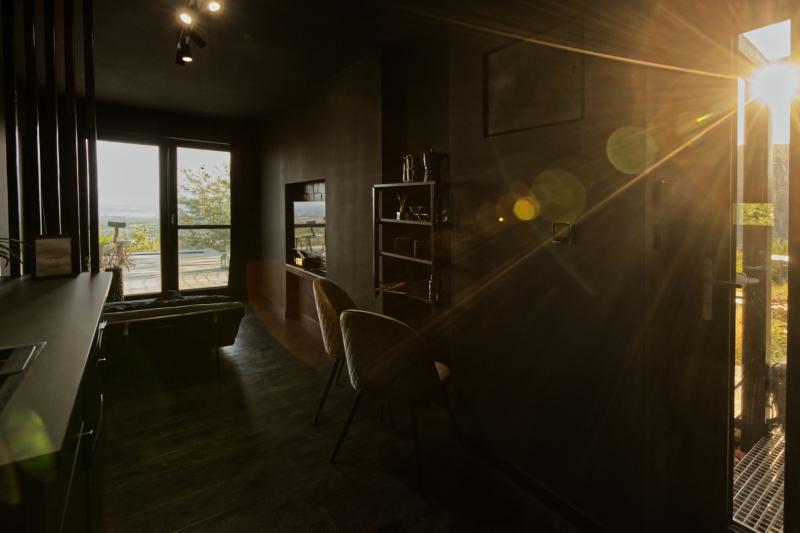Cez veľkorysé presklenia môžete z pohodlia postele sledovať, ako sa v údolí pod Hrušovom prelieva ranná hmla. Máte tak vizuálny kontakt s krajinou, čo pôsobí maximálne terapeuticky. Či už bude svietiť slnko, alebo padať dážď, pozorovaním krajiny si doprajete kúsok pre seba. Vezmite si preto rozpísanú či rozčítanú knihu, skicár, alebo laptop. Urobte si kávu a pozorujte západ slnka. A nezabudnite, že tu čas plynie úplne inak! Pomalšie a zmysluplnejšie.