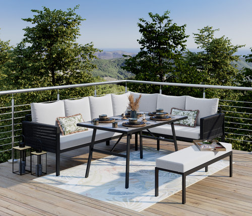 Najvýraznejším trendom posledných sezón je premena terasy alebo záhrady na plnohodnotnú vonkajšiu obývačku. Záhradné sedacie súpravy dnes svojím komfortom aj vzhľadom pripomínajú tie interiérové. Typickým príkladom je rohová lounge súprava, ktorá vytvára pohodlný priestor pre spoločné chvíle s rodinou či priateľmi. Súprava sa často skladá z dvoch lavíc, rohového dielu a priestranného stolíka. Hliníková konštrukcia zaisťuje stabilitu, a ak je práškovo lakovaná, je odolná aj voči vonkajším podmienkam. Mäkké vankúše poskytujú komfort pri každodennom používaní. Do moderných exteriérov zvoľte minimalistické antracitové vyhotovenie.