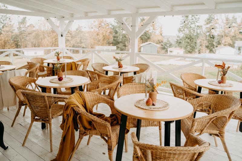 Areál sa rozkladá na úctyhodných 25 000 metroch štvorcových, a tak susedov síce máte, ale pravdepodobne o nich nebudete vedieť. Celkovo 21 farebných domčekov rôznych veľkostí pôsobí v krajine prirodzene, akoby tu stáli odjakživa. Kapacita 80 lôžok z nich robí unikátnu základňu pre akcie, ktoré potrebujú súkromie – či už ide o svadbu s bosými nohami v tráve, alebo intenzívne firemné sústredenie.