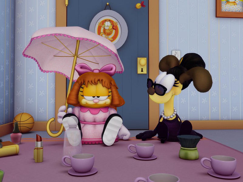 Napriek tomu si vždy dokáže poradiť po svojom a situáciu zachrániť. Nuda u neho nehrozí, aj keď najradšej trávi čas svojimi obľúbenými aktivitami, jedením lasagní, dlhým spánkom, sledovaním televízie alebo občasným podpichovaním spolubývajúcich či návštev.