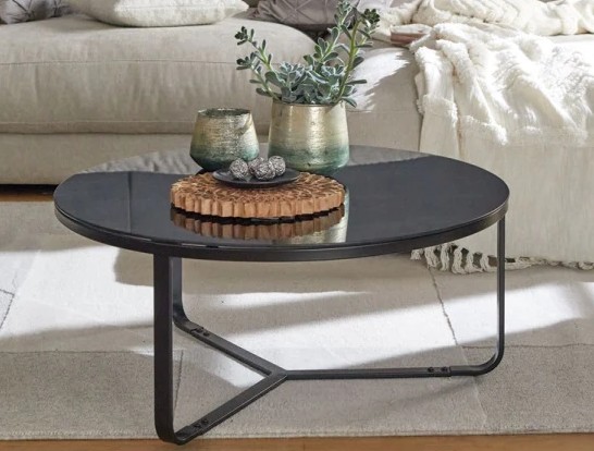Jeho okrúhly tvar zmäkčuje priestor a podporuje prirodzený pohyb v miestnosti, zatiaľ čo stabilná kovová podnož dodáva celku vzdušnosť. Skvele sa kombinuje so sedačkami na kovových nôžkach aj s ďalšími čiernymi doplnkami. Pre vytvorenie zaujímavejšej kompozície je možné stolík doplniť menším variantom z rovnakej kolekcie, čím vznikne dynamický a štýlový prvok obývacej izby.