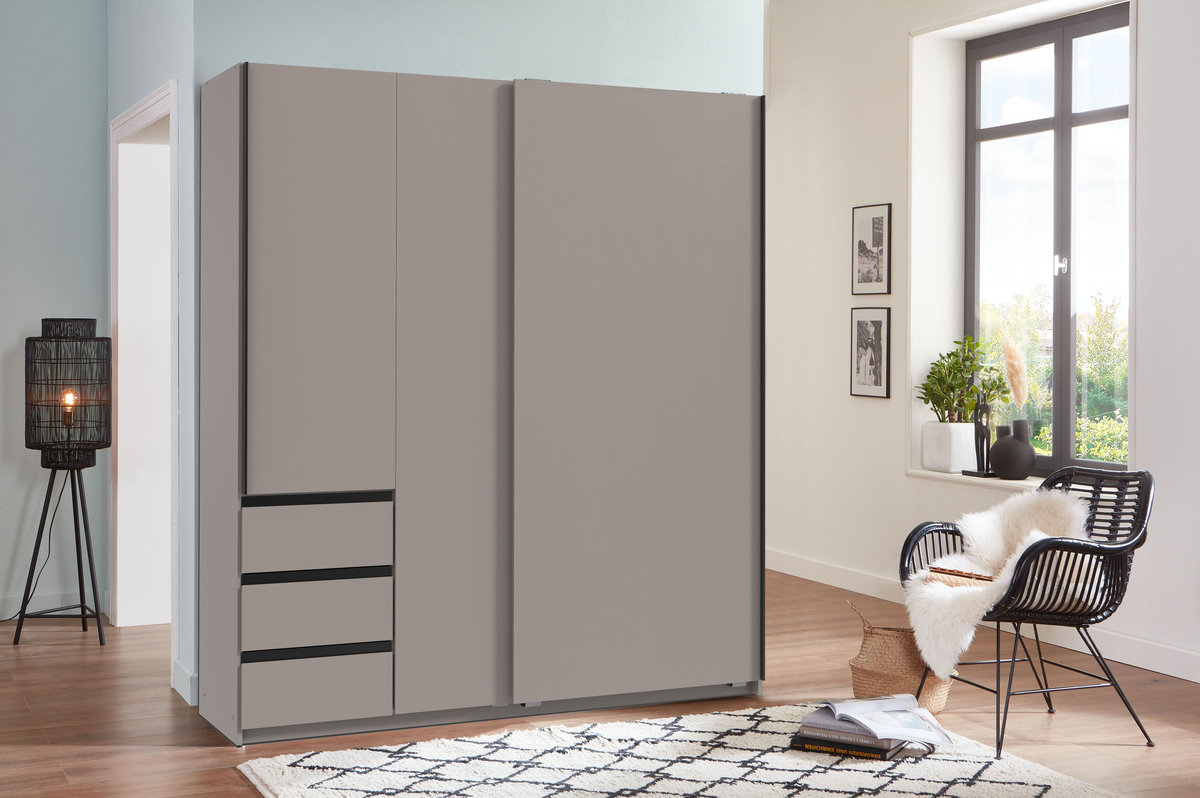 Spálňa aj predsieň patria medzi priestory, kde oceníme poriadok, prehľadnosť a dostatok úložného miesta. Šatníková skriňa Heide od ASKO – NÁBYTOK ponúka elegantné riešenie aj do menších miestností vďaka svojej šírke 168 cm. Čisté línie, matný dekor v odtieni šedá sahara a integrované zrkadlo pôsobia moderne a nadčasovo, zároveň opticky zväčšujú