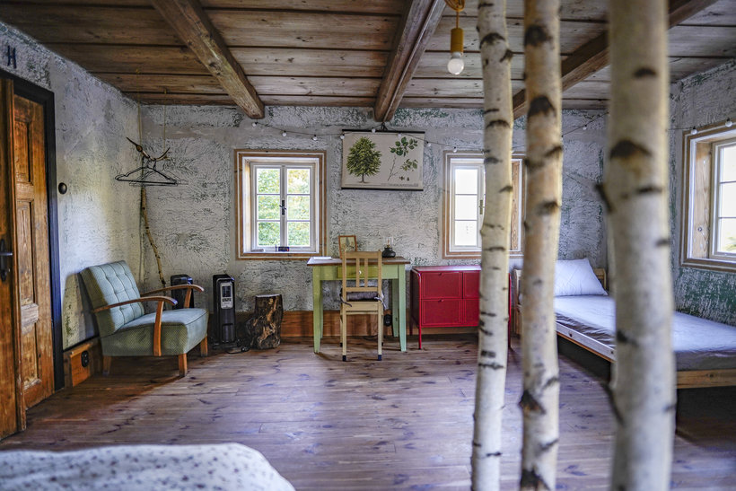 Majitelia sa tiež snažia používať len miestne materiály a uprednostňujú lokálne produkty a služby. Zároveň sú vyznávačmi slow turizmu a ten je tu naozaj cítiť na každom rohu. Skutočným miestom na dokonalý relax je spálňa s priliehavým názvom „Brloh“. Vďaka originálnemu predelu z brezových kmeňov v nej máte pocit, akoby ste nespali v dome, ale uprostred tichého lesa.